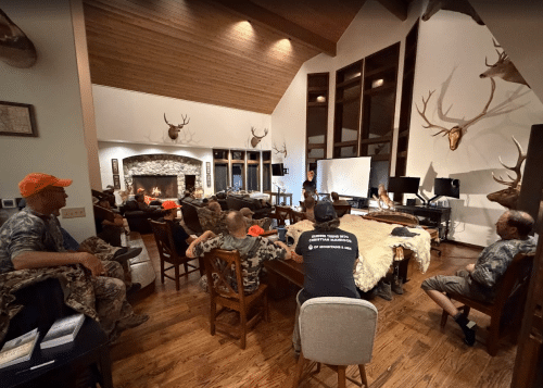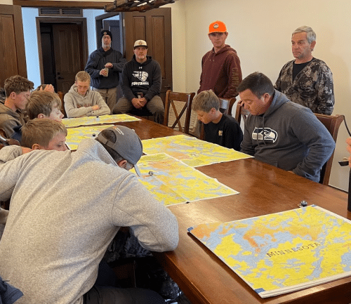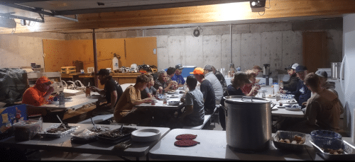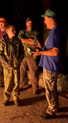 Camp Life had a great atmosphere! The boys and their mentors slept in wall tents as part of the true “hunting camp” experience. The meals were hearty: stew, chili, and even pork tenderloin fueled the hungry hunters! On Sunday, the boys who had already harvested an animal participated in hands-on Wilderness Skills classes in map reading, first aid, archery, and fire building.